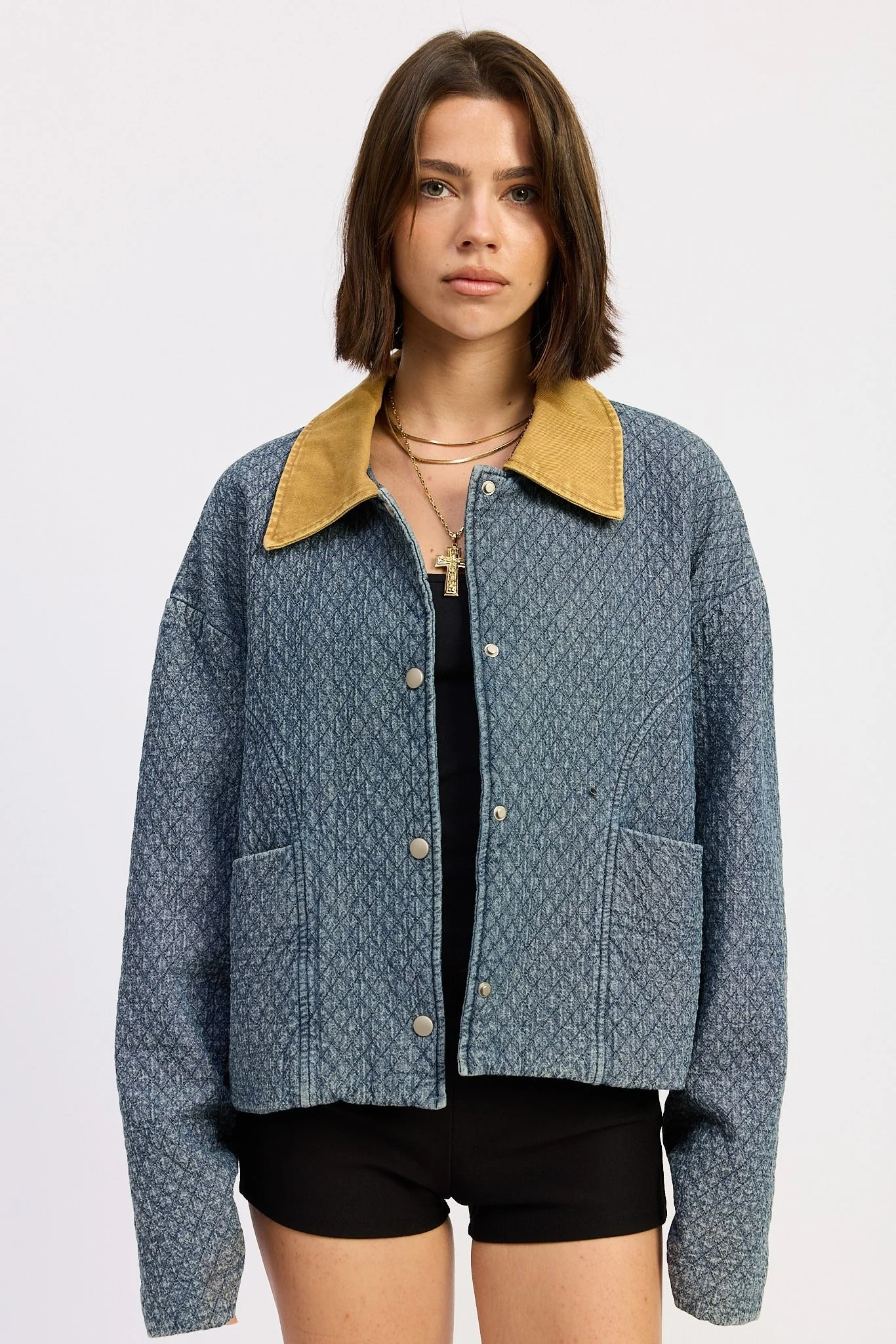 Brooklyn Quilted Contrast Collar Jacket